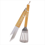 Genuine Bamboo BBQ Utensils are a great go to grilling item! This boxed set comes with Spatula and Tongs. Imprint on both items 0.75"TX3"W.